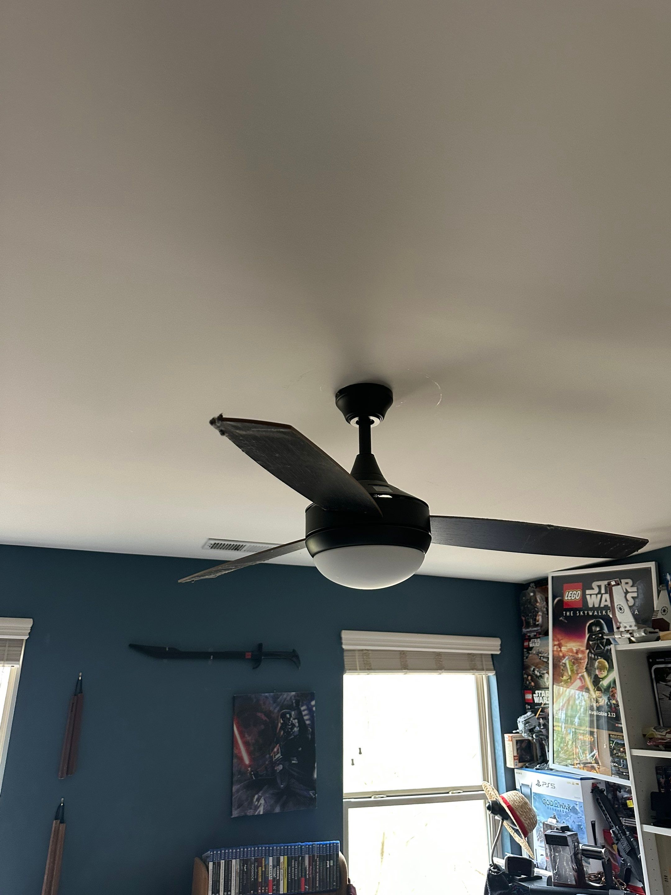 Once the repairs were complete, we tested the lighting circuit under normal operating conditions. The AFCI breaker remained stable and did not trip when the light was switched on. The ceiling fan and light now operate normally and safely, with the cause of the arcing removed.